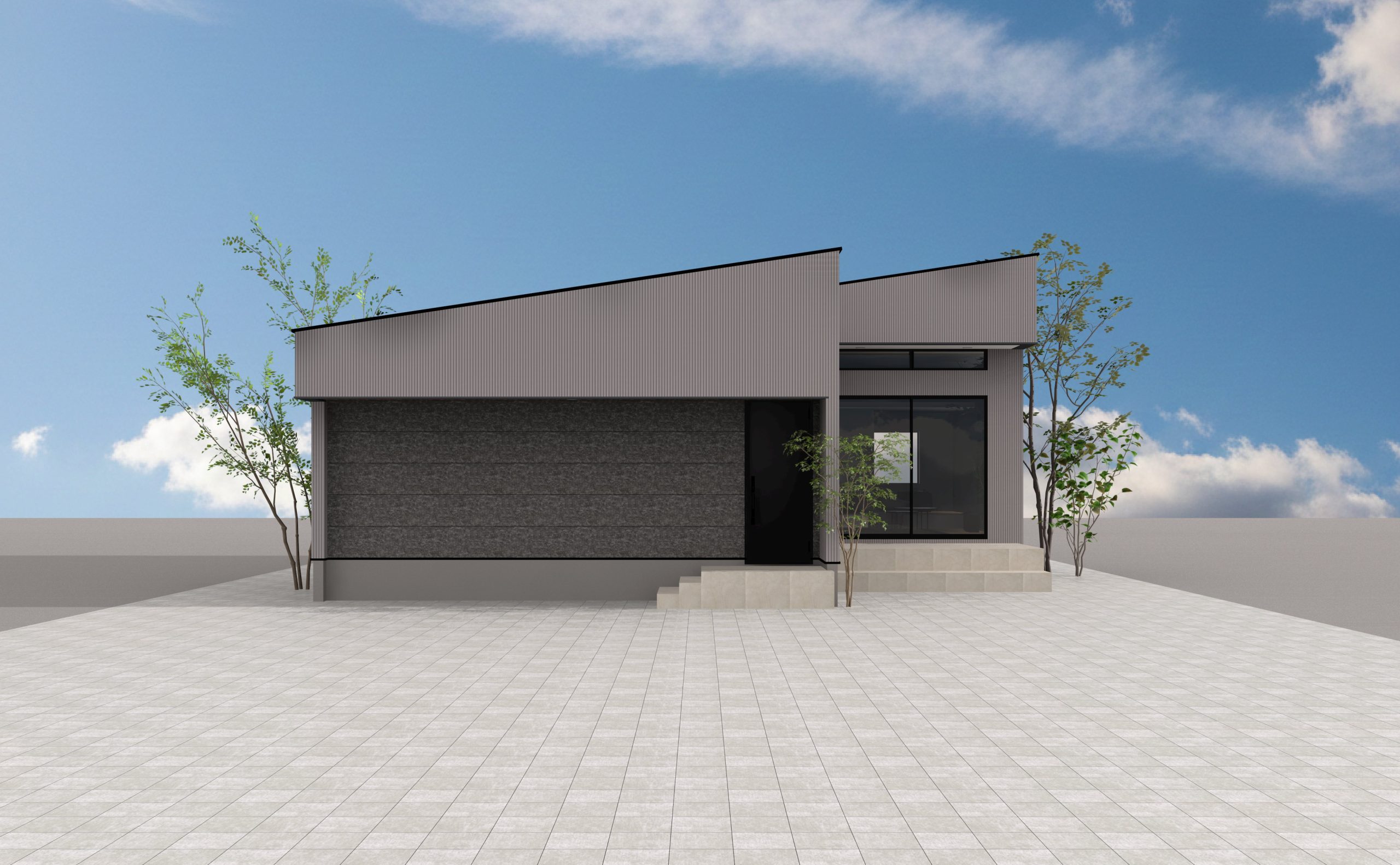 玄関ドア面は窓を一切無くし洗練された外観に。