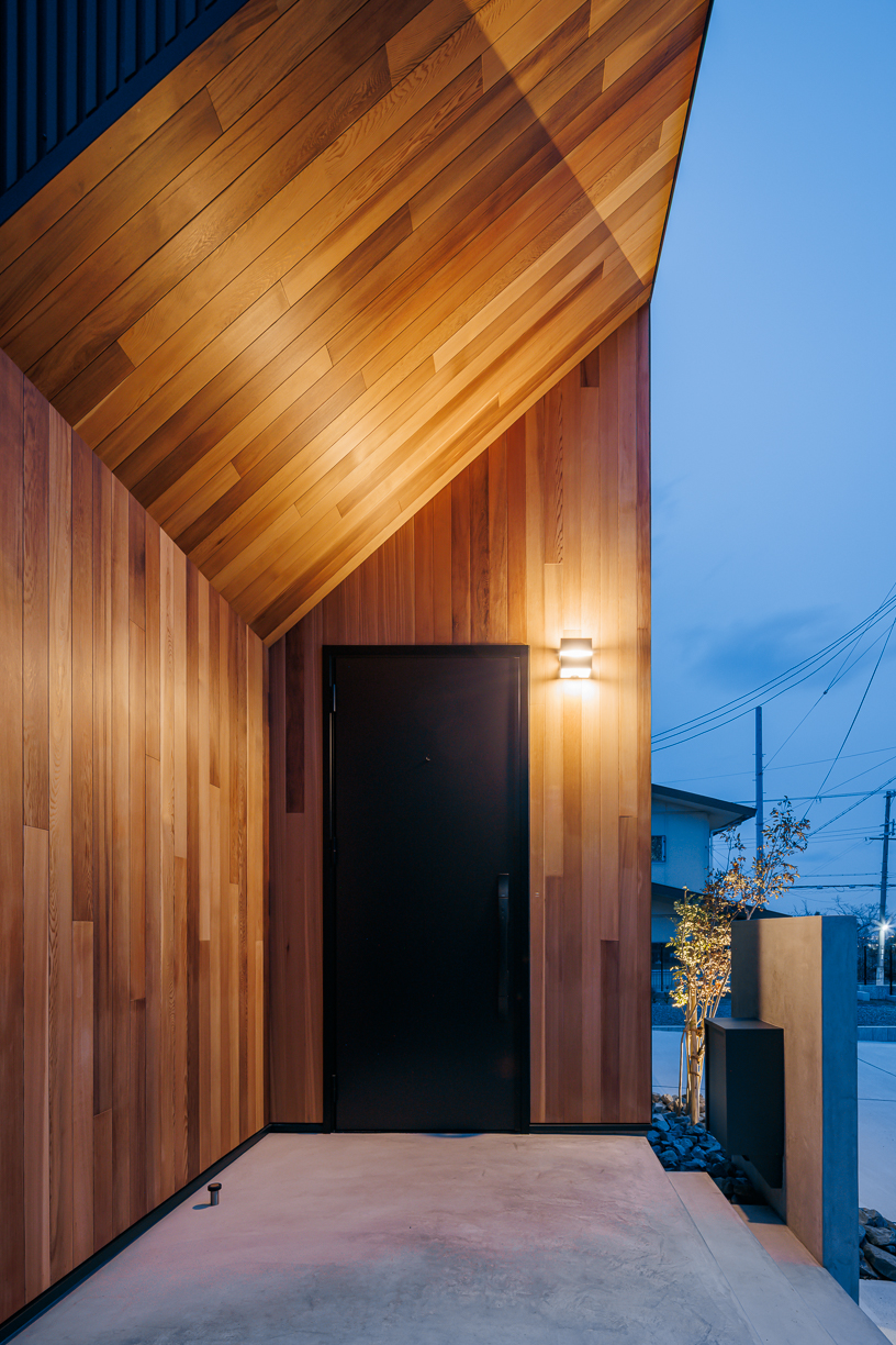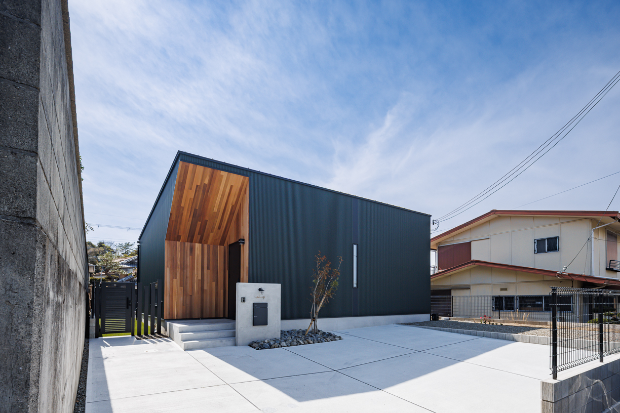 戸建てが立ち並ぶ団地の中で、スタイリッシュで、かつ飽きない雰囲気のお家にしたいとのことで