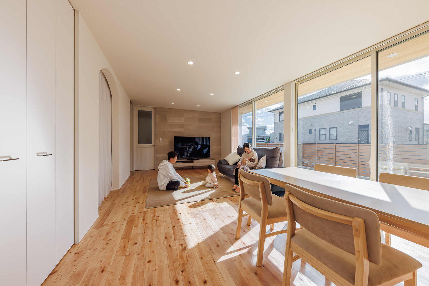 夏も過ごしたんですが、確かにクーラーは必要ですけど、クーラー切って出かけて帰ってきたときに、ひんやりさがまだ残っているので、断熱もすごいなって肌で分かりました。冬も窓際が寒いということは全然ないです。